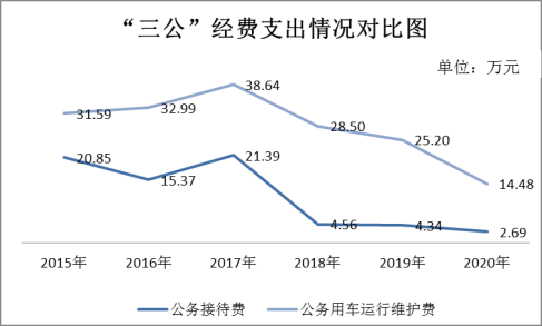 单位本年经营支出中“三公”经费支出合计17.17万元。其中:2020年公务接待费2.69万元,比上年减少1.65万元,减幅为38.02%;2020年公务用车运行维护费14.48万元,比上年减少10.72万元,减幅为42.54%。