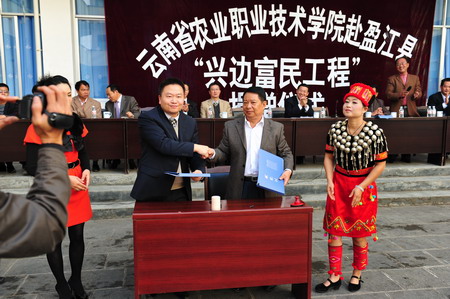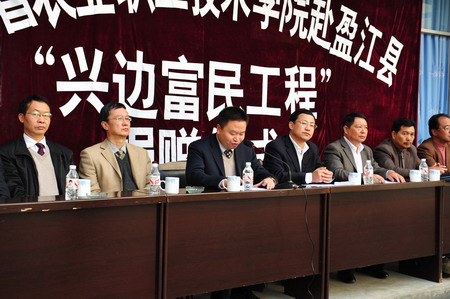 德宏州盈江县是云南省边疆少数民族贫困县,是我院在2008年云南省政府确定的第二轮对口帮扶“3+1兴边富民”对象。结合盈江县的特点及我院的办学优势,我院积极主动提出为盈江县免费举办养殖业培训班和种植业培训班,派出精兵强将重点培养种养殖大户,提高盈江县种植养殖户的科学种养殖水平,提升盈江县农业局、畜牧局技术人员的职业技能;同时,向盈江县职业中学赠送价值七万元的23台电脑,赠送三万元的科技图书,大力帮扶盈江县经济、教育的发展。(蔡永生 供稿)