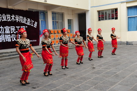 捐赠仪式后,彭志远院长等领导、嘉宾兴致勃勃地欣赏了盈江县高级职业中学师生表演的民族歌舞,并与演出师生合影留念。