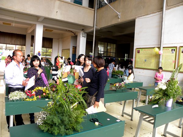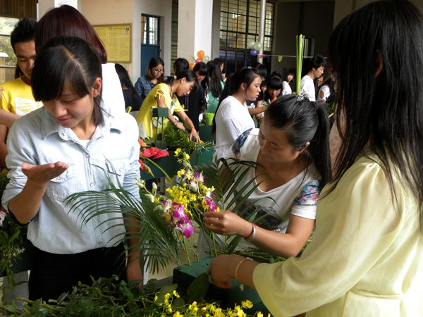 为了丰富大学校园生活,展现当代大学生青春亮丽的风采,让有插花艺术基础和爱好插花的同学发挥创造力和想象力,施展插花的技能,提高专业能力,陶冶情操。2014年6月18日13:00由园林园艺学院学生会社团部承办的第六届插花大赛在小哨校区图书信息中心大厅隆重举行。担任此次大赛的评委有林泋君、罗瑞芳等老师。