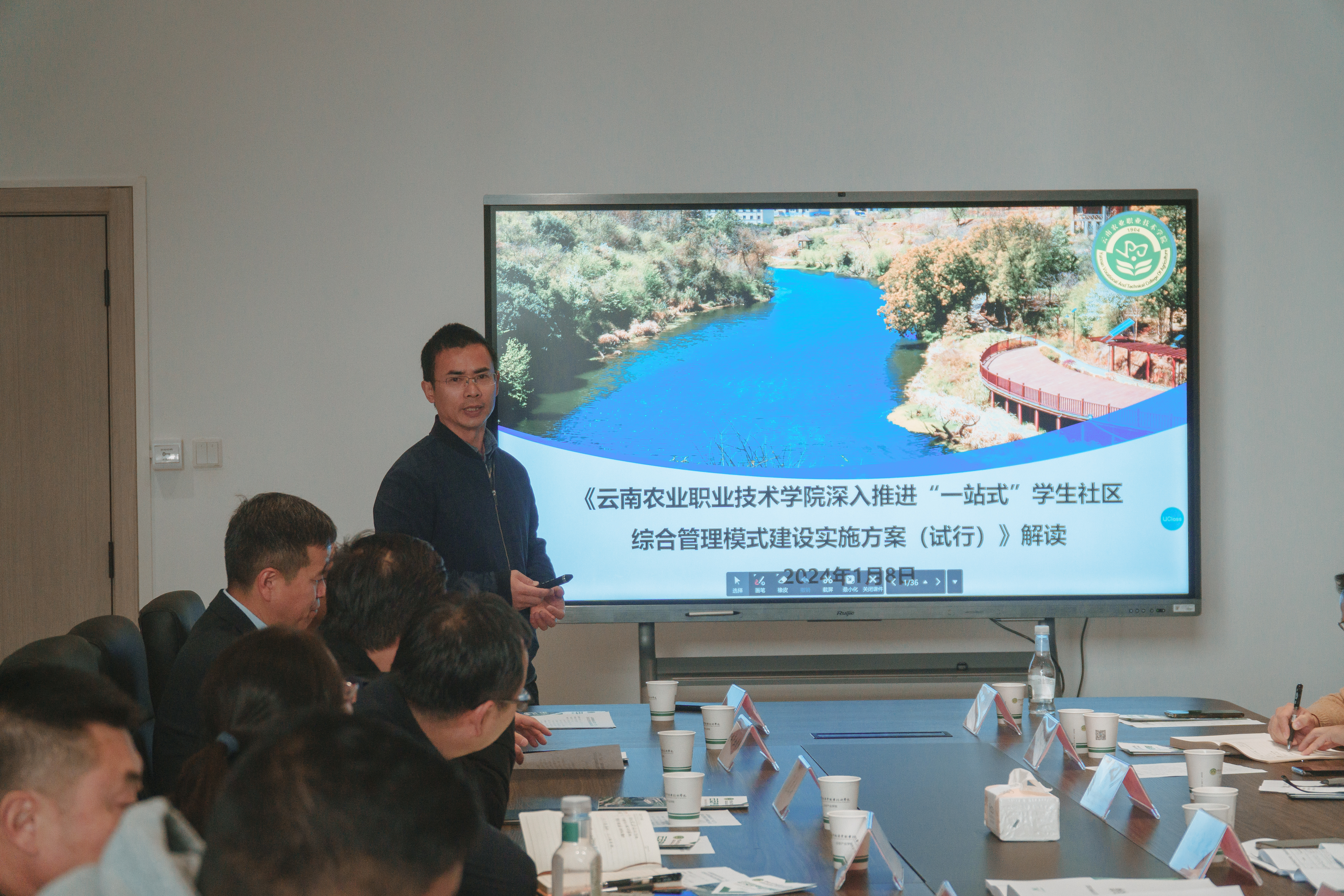 通知中心为全面贯彻落实教育部高校“一站式”学生社区综合管理模式建设推进会会议精神和《中共云南省委教育工委办公室关于加快推进“一站式”学生社区综合管理模式建设工作的通知》要求,切实提高思想认识,推进“一站式”学生社区综合管理模式内涵建设。1月8日,学院在安宁校区召开“一站式”学生社区综合管理模式建设推进会。