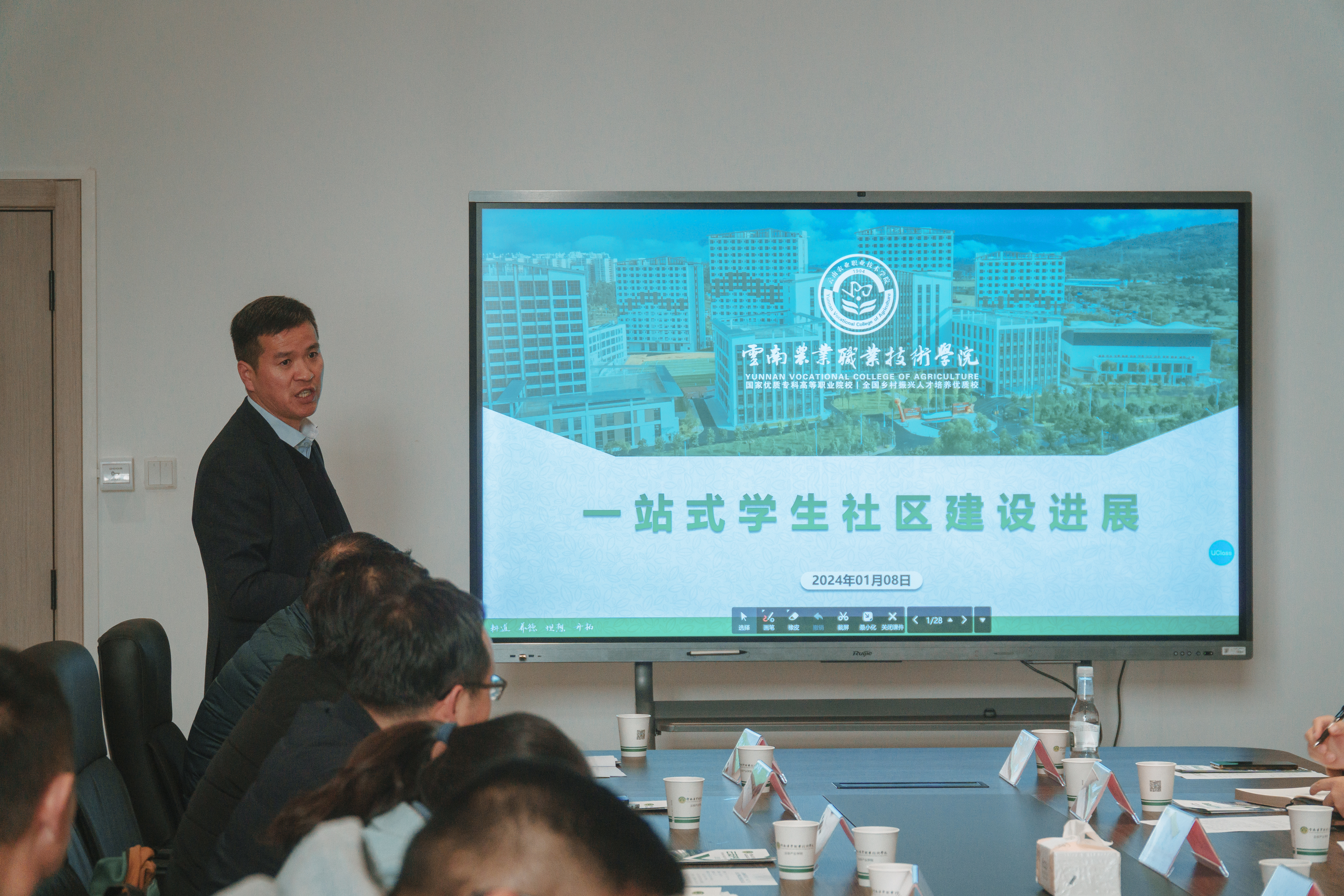 随后,省委教育工委学生工作部副部长刘小娟、干部王海涛,学院党委书记文俊、党委副书记伍学龙及各相关部门主要负责人,各二级学院党总支书记、副书记,专职辅导员代表到学院安宁校区参观我院在“一站式”学生社区建设方面的创新实践和成果并在综合调度指挥中心召开现场推进会,学院院长陈太安主持会议。