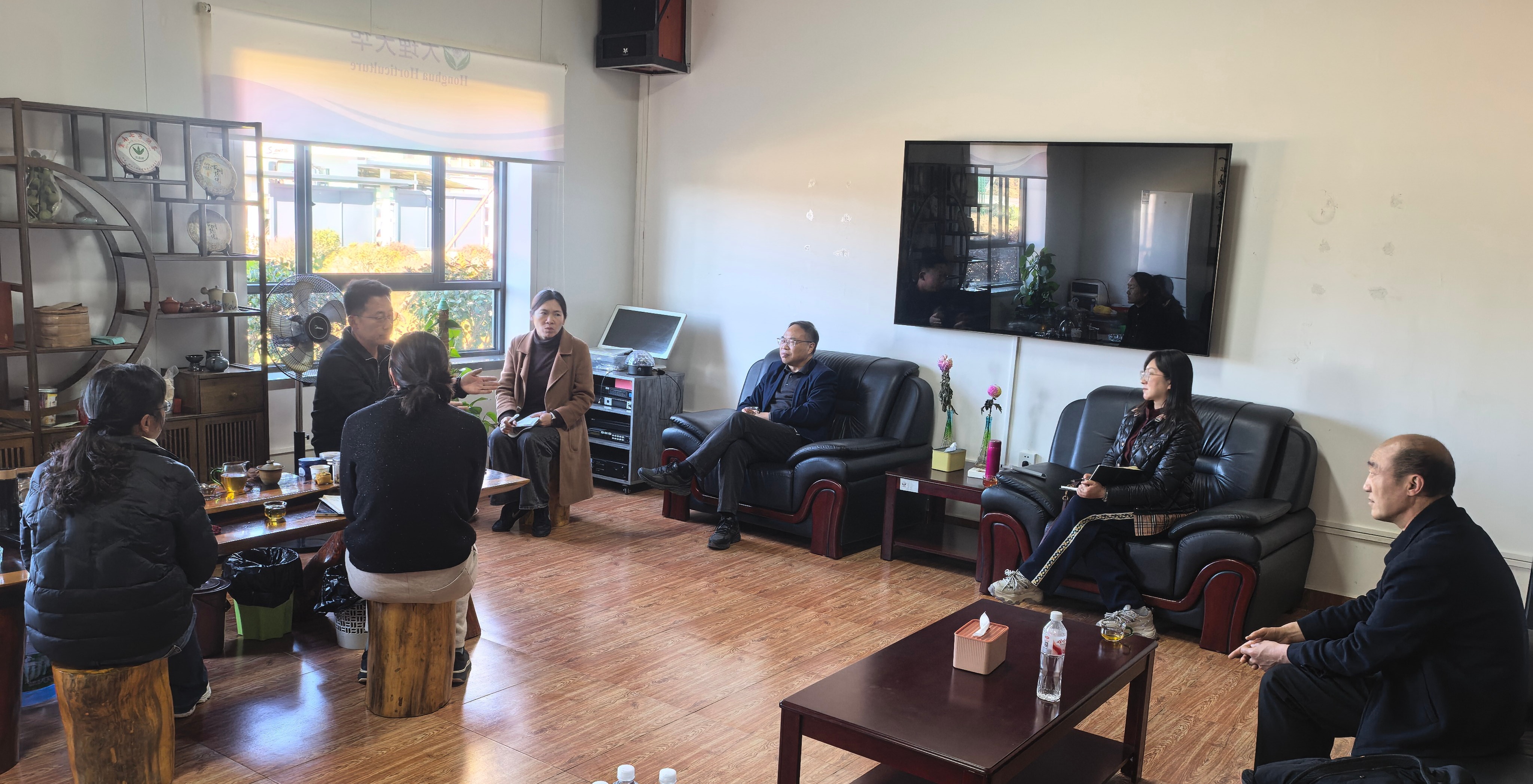 1月22日,调研组赴大理天华生物农业有限公司调研,受到了公司陈志星总经理的热情接待。作为沪滇协作重点项目承载企业,天华公司构建了从种苗研发到市场销售的完整花卉产业集群,在菊花、玫瑰、郁金香等品类种植中的分级标准、田间管理规范具有显著优势。调研聚焦种苗培育、生产种植、分级采收等核心岗位,详细调研企业精细化管理模式与标准化生产流程。双方就花卉种植岗位技能要求、人才评价标准等达成共识,计划将企业成熟的岗位操作流程、品质分级规范转化为标准化教学内容,同步融入工作手册式教材中。