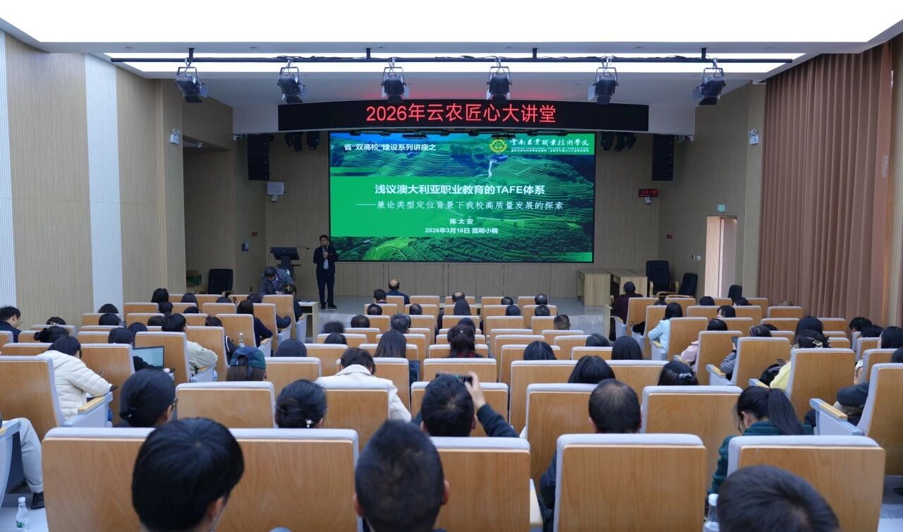 通知中心为全面落实省级“双高”学校建设各项任务,纵深推进职业教育内涵式改革,加快推动学校高质量发展步伐,3月18日下午,由科研产业处主办,农学与园艺技术学院、教务处承办的2026年“云农匠心”大讲堂2026年第一期、第二期在小哨校区综合楼阶梯教室开讲。本轮讲座聚焦职业教育国际先进经验借鉴与课程教材改革两大主题,统筹部署学校双高建设重点工作,为学校打造高水平农业职业院校、培育高素质技术技能人才指明方向、明晰路径。