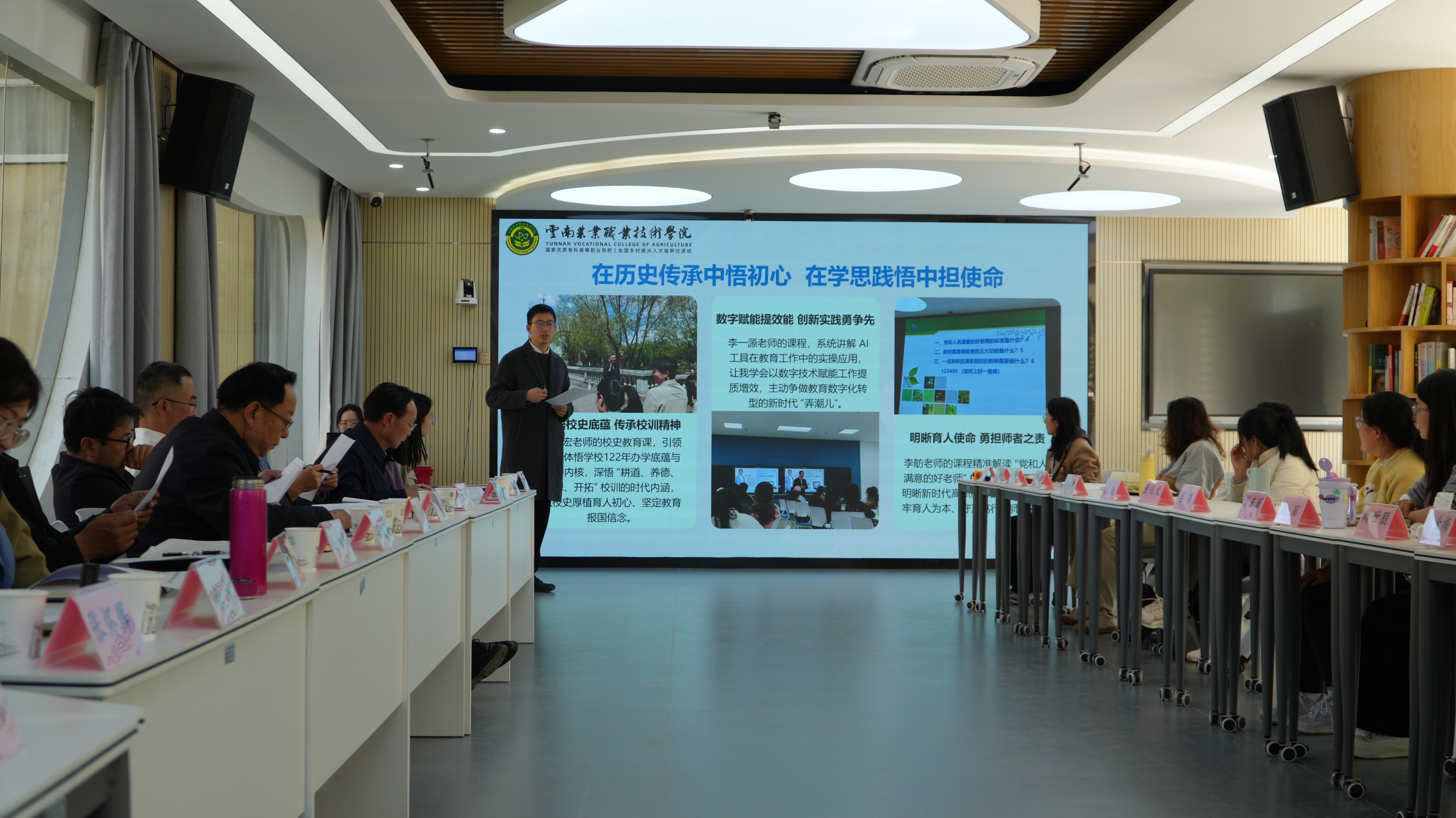 3月18日,新教师们前往安宁校区,了解云安农文旅产业学院的办学特色后聆听了党总支书记李一源老师关于教师成长路径、数字教学资源与在线教学工具的专题授课,掌握数字化教学实操技能;下午,冯志宏教授带领大家开展校史实地体验式教学,从校史相关旧址中感悟学院的发展脉络、办学底蕴与农职精神,厚植校园文化认同。