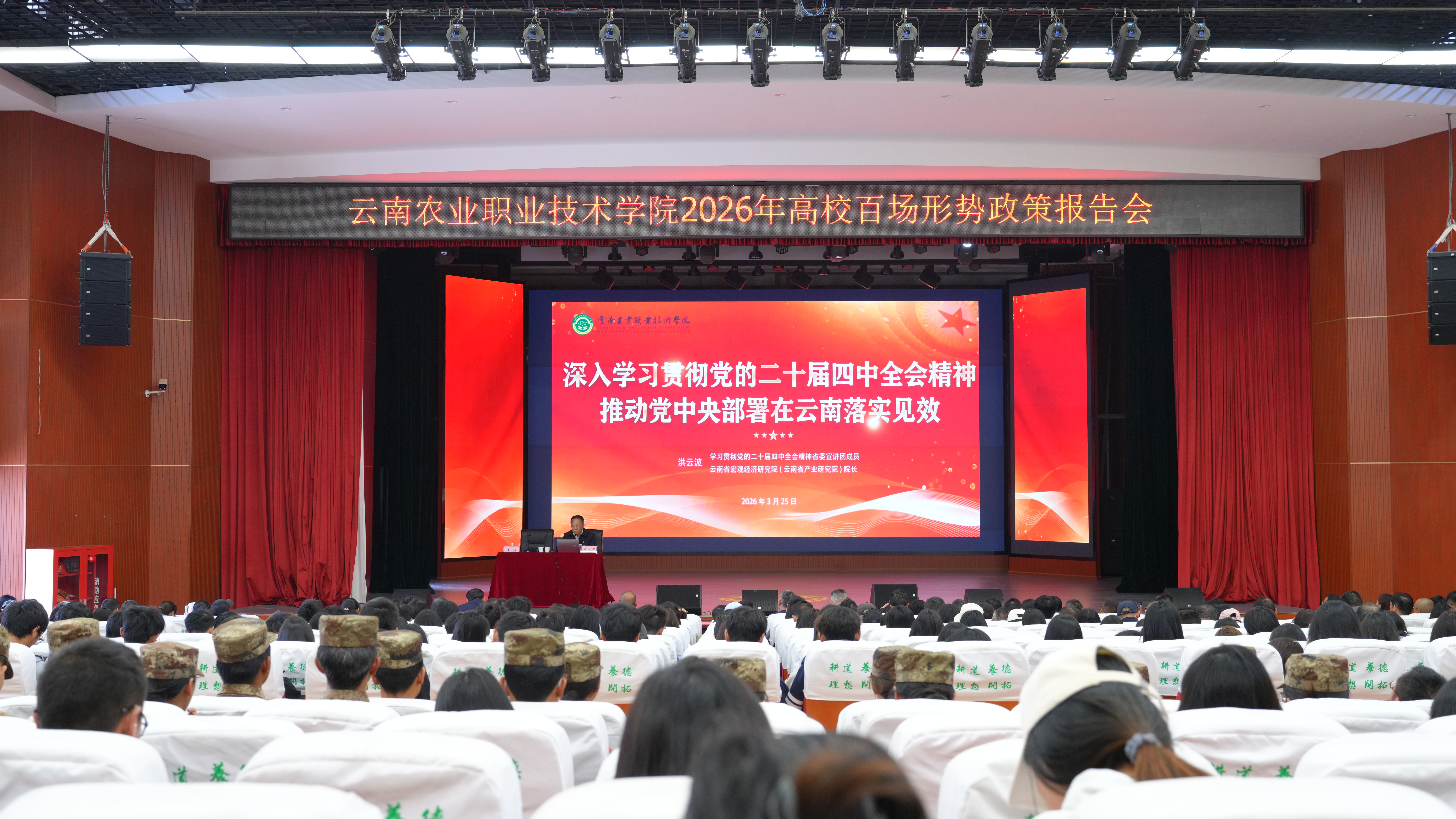 洪云波院长围绕发展规划的历史演进、党的二十届四中全会重大意义、“十五五” 时期的重要地位、指导方针与主要目标、战略任务和重大举措,以及坚持和加强党的全面领导、凝聚推进中国式现代化磅礴力量等多个维度,结合云南省发展实际与学校办学定位,对党的二十届四中全会精神及云南省 “十五五” 规划实施路径进行系统解读。洪云波院长强调,涉农高校作为人才培养与技术创新的重要阵地,要精准对接地方产业发展需求,加快培养更多高素质技术技能人才,为云南省特色农业产业提质增效、高质量发展注入强劲动力。