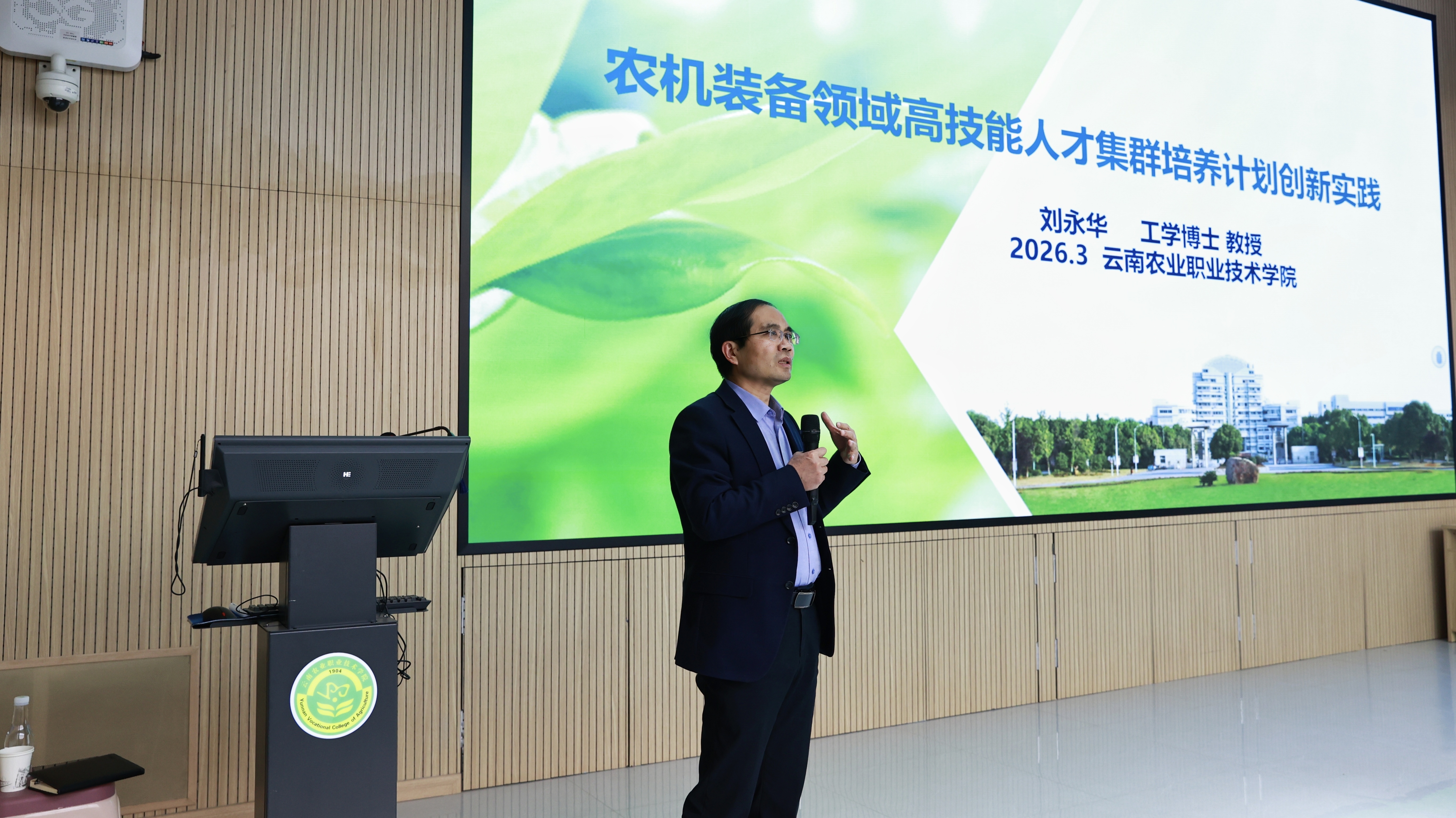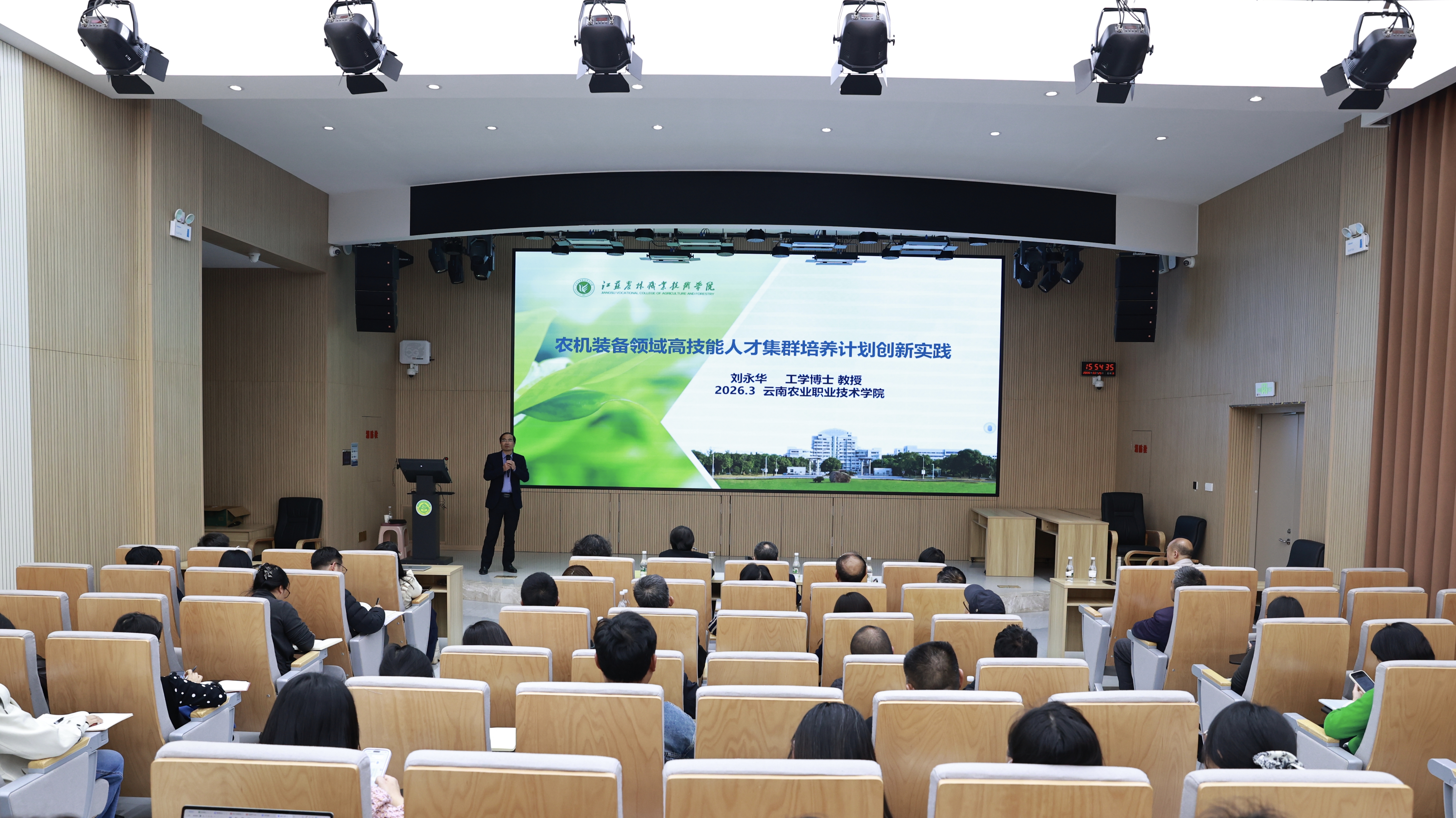 通知中心3月25日下午,江苏农林职业技术学院机电工程学院刘永华教授应邀做客beats3652026年第4期“云农匠心”大讲堂,以“农机装备领域高技能人才集群培养创新实践”为题开展交流辅导。讲座由校长陈太安主持,副校长盛冀萍、银龄特聘教授、二级学院行政负责人,以及专业建设与教学管理等有关人员参加。