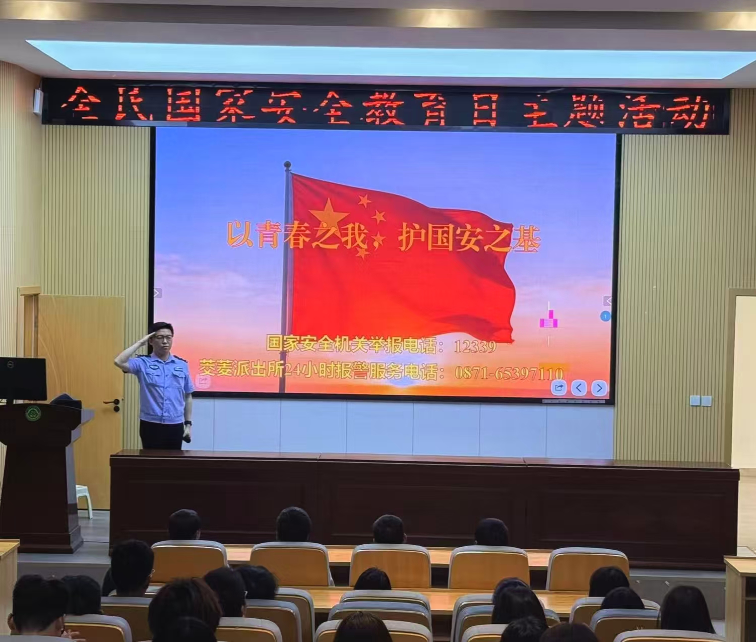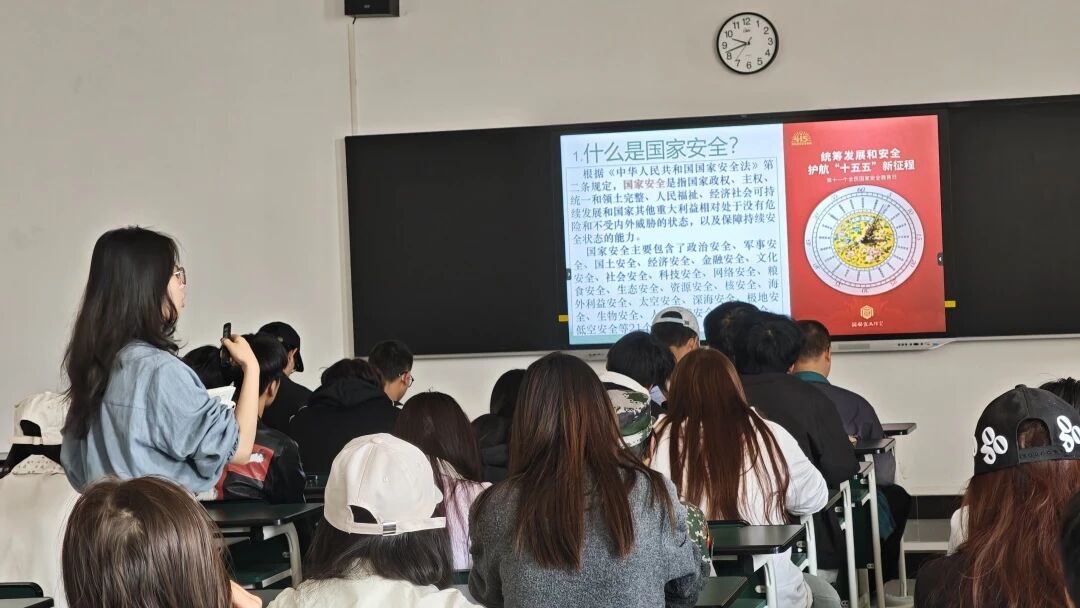 同时,学校邀请茭菱派出所高乾力警官,带来《以青春之我、护国安之基》主题讲座,高警官结合典型案例,围绕校园安全、网络安全等重点领域,为同学们普及国家安全相关法律法规和风险防范知识,引导青年学子以实际行动守护国家安全。