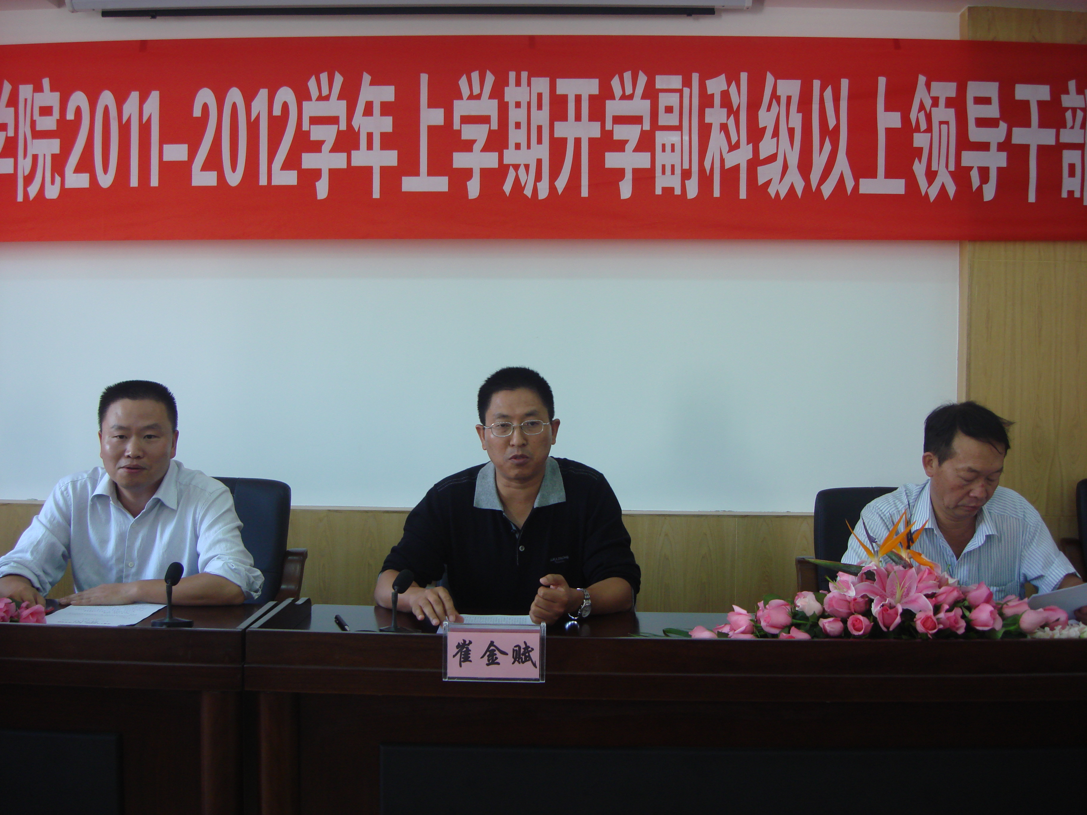 2011年8月20日下午,在茭菱校区行政楼三楼会议室召开了2011-2012学年上学期副科级以上领导干部工作会。会议由彭志远院长主持,学院全体副科级以上领导干部参加了会议。